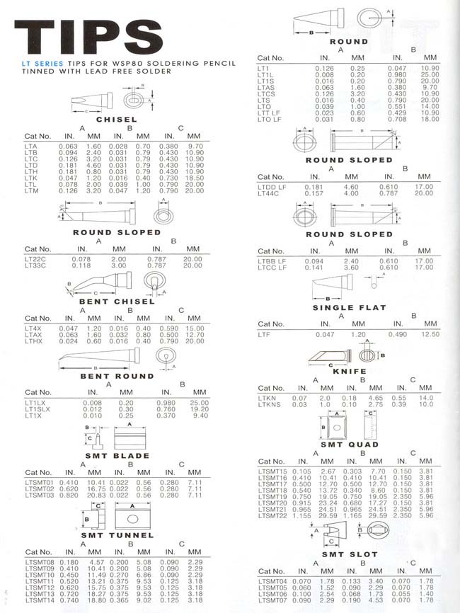LT系列烙鐵頭用于WSD80/WS81焊臺(tái)。