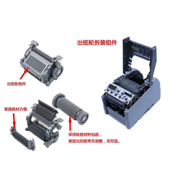 膠帶輸送功能: 采用防靜電硅膠輪擠壓輸出,膠帶輸出無劃痕