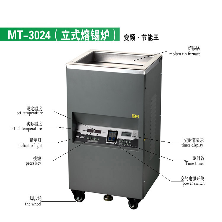 - 億納特美生錫爐MT-3024普通立式方型錫爐 產(chǎn)品型號:MT-3024 不銹鋼立式錫爐,大容量錫爐,設有腳輪,方便錫爐移動。溫度調節(jié)范圍0-400,適合用各類有鉛作業(yè),使用304不銹鋼板制作。壽命經(jīng)久耐用,可按客戶要求訂做各種尺寸錫爐