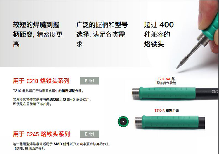設(shè)計符合人體工程學(xué),“焊嘴-握柄”距離最短,從而確保更高的準確性和舒適性。