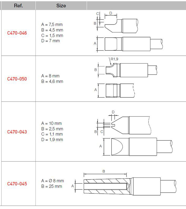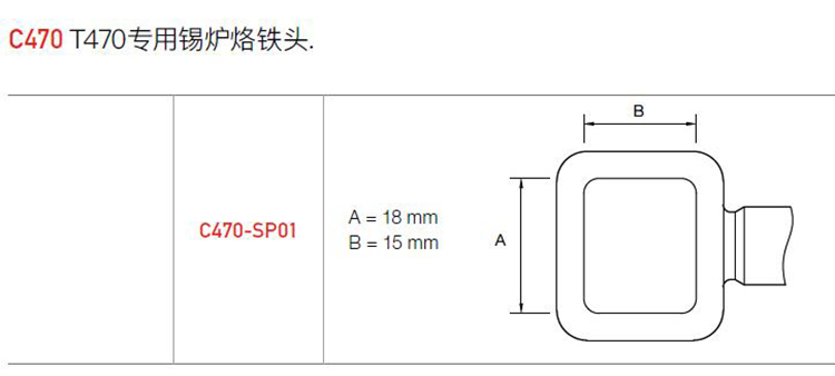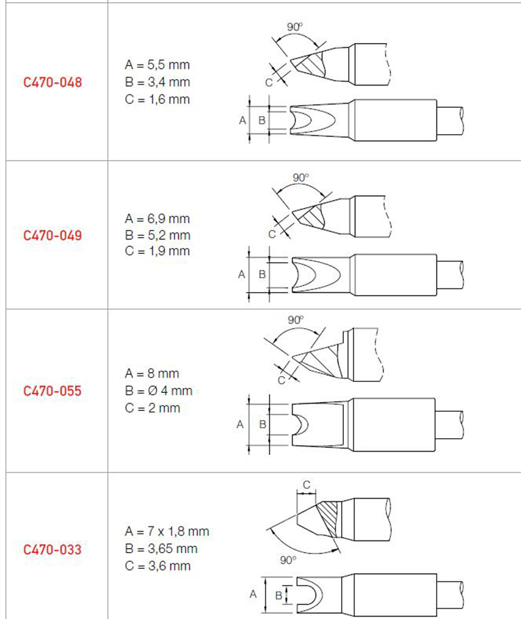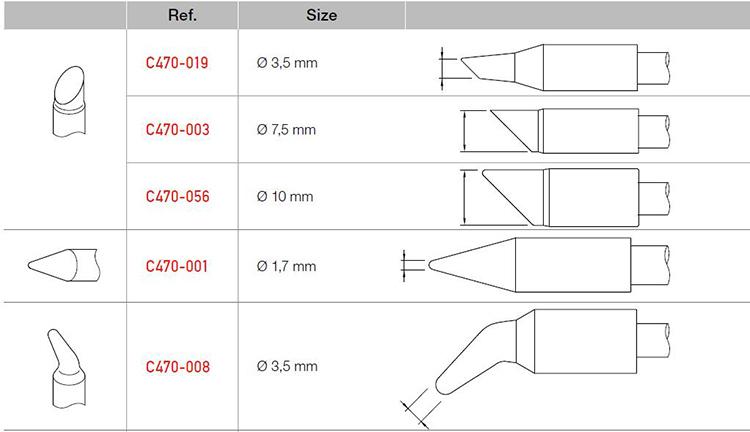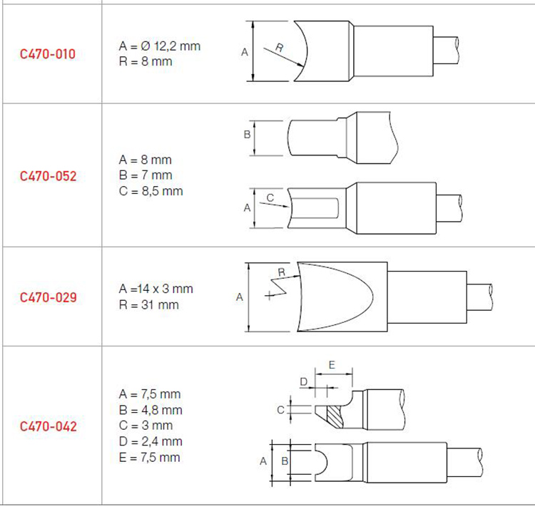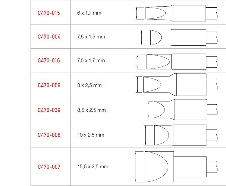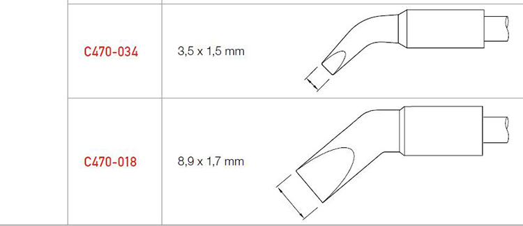 - C470 型烙鐵頭是 JBC 系列中最大的一種。