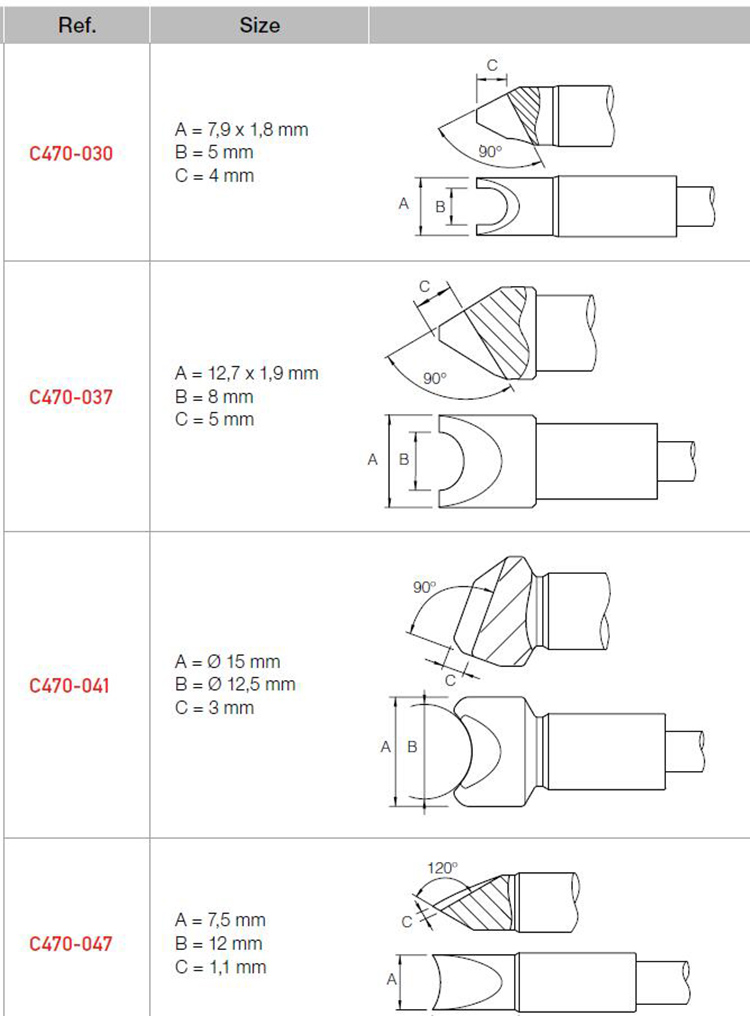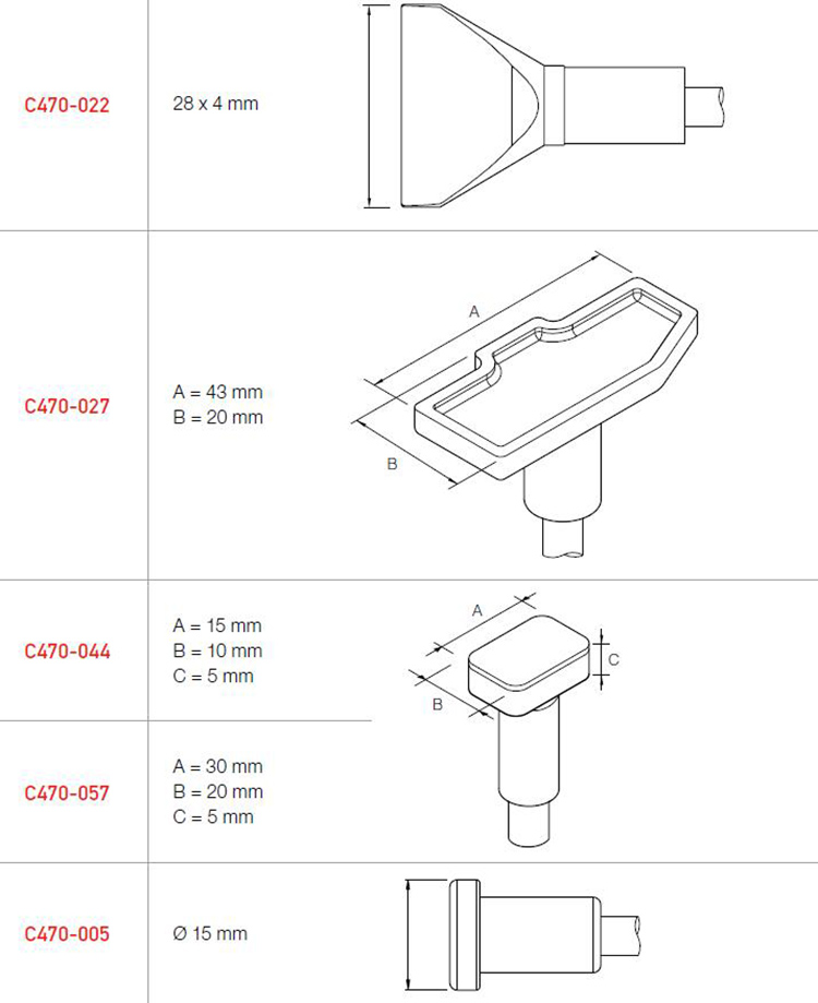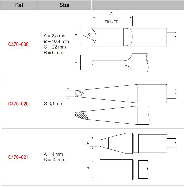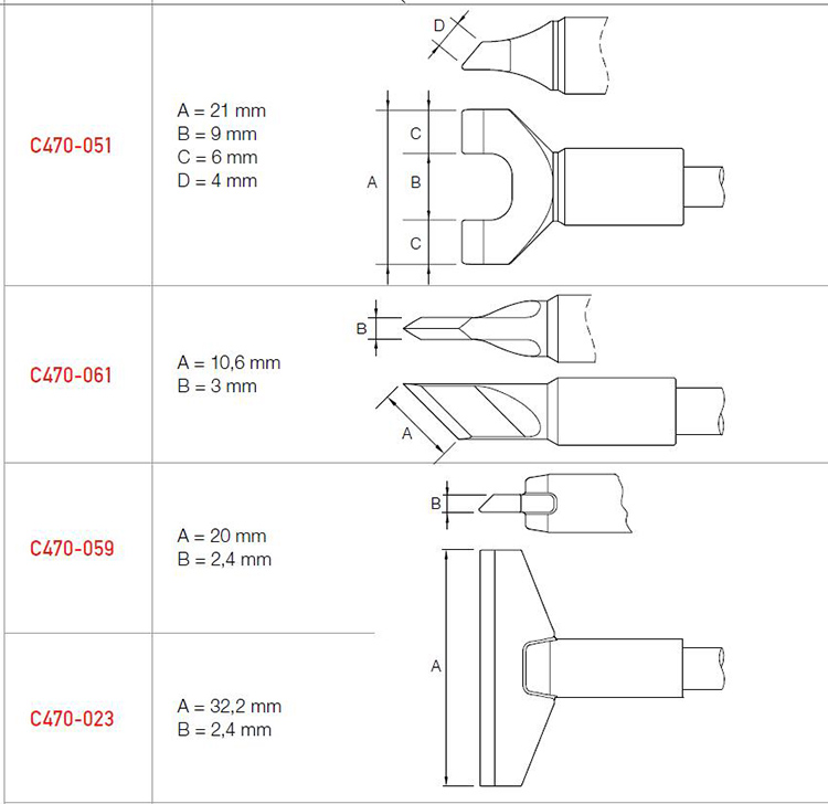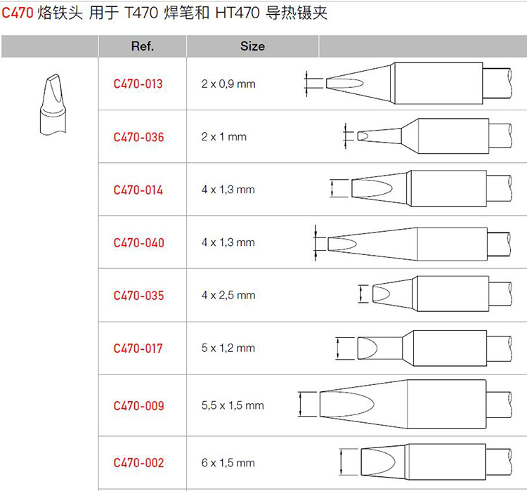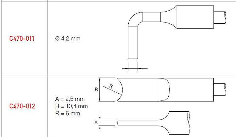 - C470 型烙鐵頭是 JBC 系列中最大的一種。