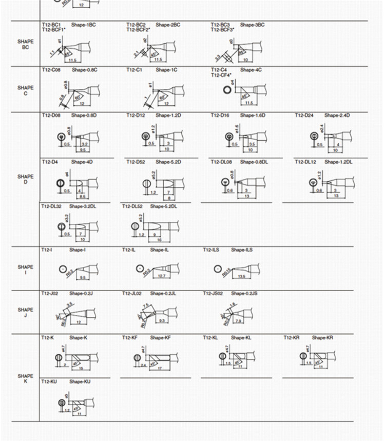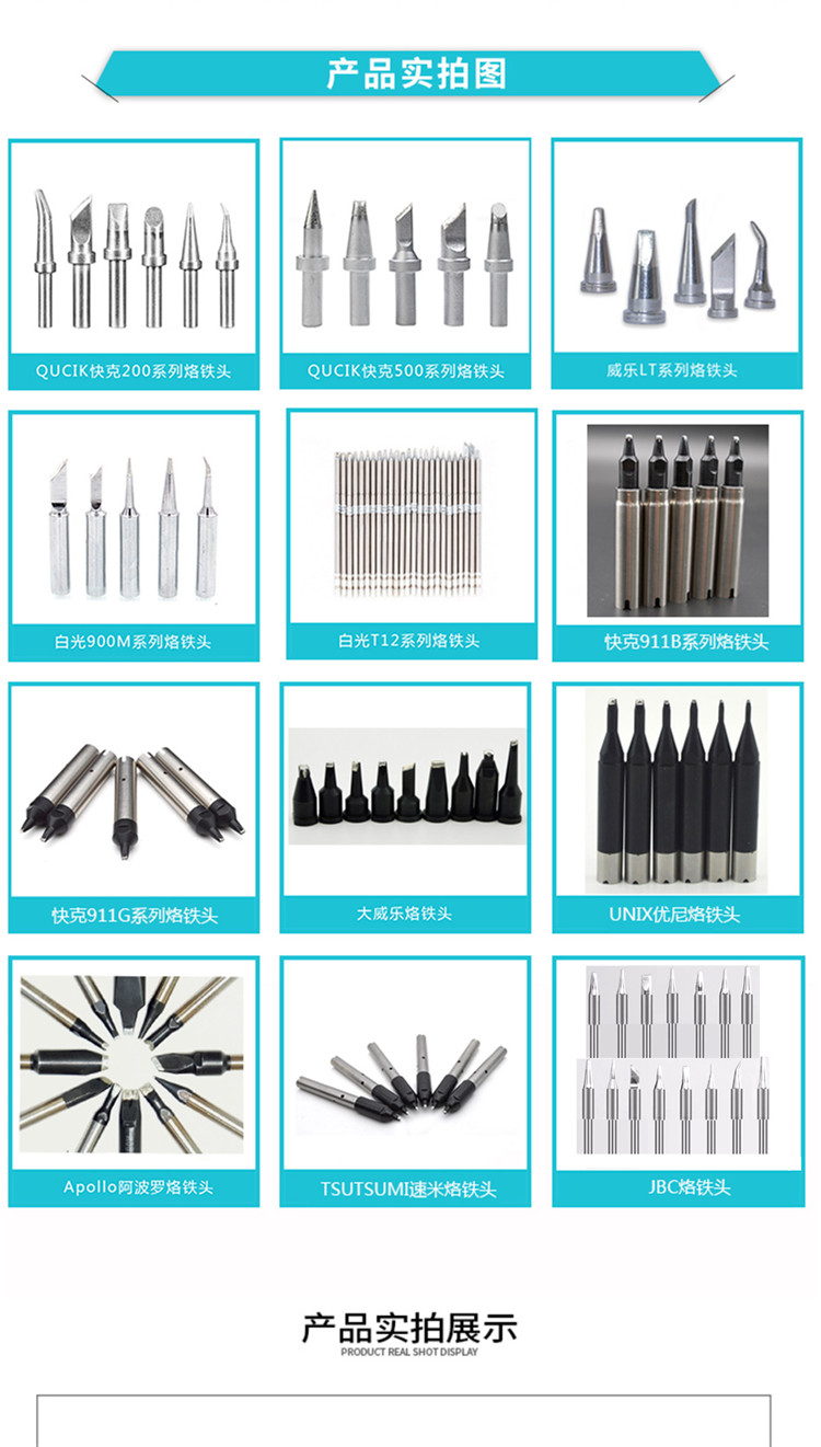 烙鐵頭系列型號(hào) 900M系列,900L系列,900S系列,918系列,920系列,924系列,980系列,T4系列,T10系列,T11系列,T12系列,T13系列、T14系列,T18系列,T20系列,N452系列,N454系列。 900M系列: 900M-T-B、900M-T-BF2、900M-T-LB、900M-T-SB、900M-T-S4、900M-T-0.8D、900M-T-1.2D、900M-T-1.6D、900M-T-2.4D、900M-T-3.2D、900M-T-S3、900M-T-1.2LD、900M-T-2LD、900M-T-1.8H、900M-T-H、900M-T-0.5C、900M-T-0.8C、900M-T-1C、900M-T-1CF、900M-T-1.5CF、900M-T-2C、900M-T-2CF、900M-T-3C、900M-T-3CF、900M-T-4C、900M-T-4CF、900M-T-S11、900M-T-I、900M-T-SI、900M-T-K、900M-T-R、900M-T-RT 900L系列: 900L-T-B、900L-T-2B、900L-T-2.4D、900L-T-3.2D、900L-T-S1、900L-T-2C、900L-T-2CF、900L-T-3C、900L-T-3CF、900L-T-4C、900L-T-4CF、900L-T-5C、900L-T-5CF、900L-T-I、900L-T-K 900S系列: 900S-T-1.2D、900S-T-1.6D、900S-T-1C、900S-T-2C、900S-T-B、900S-T-I 918系列: 918-T-B、918-T-BC、918-T-3C、918-T-3CF、918-T-4C、918-T-4CF、918-T-5C、918-T-5CF、918-T-3D。 920系列: 920-T-A、920-T-B、920-T-BC、920-T-2C、920-T-2CF、920-T-3C、920-T-3CF、 920-T-4C、920-T-4CF、920-T-2.4D、920-T-I、920-T-SB、920-T-R、920-T-RT 924系列: 924-T-1002、920-T-1003、920-T-1004、920-T-1005、920-T-1006、920-T-1007、920-T-1010、920-T-1011、920-T-1012、920-T-1013、920-T-1014、920-T-1020 980系列: 980-T-B、980-T-BC、980-T-D、980-T-BI T4系列: T4-08D、T4-12D、T4-16D、T4-24D、T4-B、T4-05C、T4-1C、T4-1CF、T4-2C、T4-2CF、T4-3C、T4-3CF、T4-K、T4-I T10系列: T10-B、T10-BCF1、 T10-C5、 T10-D24、T10-J02、T10-B2、T10-BCF2、T10-C6、T10-D32、T10-K、 T10-BC1、T10-BCF3、T10-CF5、T10-D4、T10-KL、T10-BC2、T10-BCF4、T10-D08、T10-D52、T10-KU、T10-BC3、T10-BCM2、T10-D12、T10-D6、T10-L1、T10-BC4、T10-BCM3、T10-D16、T10-I、T10-LB T11系列: T11-B、T11-D4 T12系列: T12-B、T12-B2、T12-B3、T12-B4、T12-BL、T12-BZ、T12-B2Z、T12-WB2、T12-WB2、T12-BC1、T12-BC2、T12-BC3、 T12-BC1Z、T12-BC2Z、T12-BC3Z、T12-BCF1、T12-BCF2、T12-BCF3、 T12-BCF1Z、T12-BCF2Z、T12-BCF3Z、T12-BCM2、T12-BCM3、T12-C1、T12-C4、T12-CF4、T12-C4Z、T12-D08、T12-D12、T12-D16、T12-D24、T12-D4L、T12-D52、T12-DL08、T12-DL12、T12-DL32、T12-DL52、T12-D12Z、T12-D16Z、T12-D24Z、T12-D4Z、T12-WD08、T12-WD12、T12-WD16、T12-WD52、T12-I、T12-IL、T12-ILS、T12-WI、T12-J02、T12-JL02、12-JS02、T12-K、T12-KF、T12-KL、T12-KR、T12-KU、T12-KFZ、T12-KRZ、T12-1201、T12-1202、T12-1203、T12-1204、T12-1205、T12-1206、T12-1207、T12-1208、T12-1209、T12-1001、T12-1002、T12-1003、T12-1004、T12-1005、T12-1006、T12-1007、T12-1008、T12-1009、T12-1010、T12-1401、T12-1402、T12-1403、T12-1404、T12-1405、T12-1406 T13系列: T13-BC2、T13-BL、T3-BC1、T13-BCF1、T13-BC2、T13-BCF2、T13-BC3、T13-BCF3、T13-D08、T13-D16、T13-D24、T13-J02、T13-KF、T13-KR、T13-KU、T13-BCM2、T13-BCM3 T14系列: T14-B2、T14-C6、T14-D24、T14-J02、T14-LB、T14-BC2、T14-D08、T14-D4、T14-K、T14-BC3、T14-D16、T14-D6、T14-KU T18系列: T18-B、T18-I、T18-SB、T18-C05、T18-C1、T18-CF1、 T18-CF15、T18-C2、T18-CF2、T18-CSF25、T18-C3、T18-CF3、 T18-C4、T18-CF4、T18-D08、T18-D12、T18-D16、T18-D24、T18-D32、T18-K T20系列: T20-BC2、T20-BC3、T20-B、 T20-C5、T20-C6、T20-D16、T20-D24、T20-D32、T20-D6、T20-K、T20-KU、T20-B L、T20-L 2、T20-BL3 N452系列: N452-T-B、N452-T-C、N452-T-1C、N452-T-1CF、N452-T-2C、N452-T-2CF、N452-T-3C、N452-T-3CF、N452-T-4C、N452-T-4CF、N452-T-D、N452-T-I、N452-T-SB、N452-T-SC、N452-T-SD N454系列: N454-T-B、N454-T-2C、N454-T-2CF、N454-T-3C、N454-T-3CF、N454-T-4C、N454-T-4CF、N454-T-5C、N454-T-5CF、N454-T-D、N454-T-I