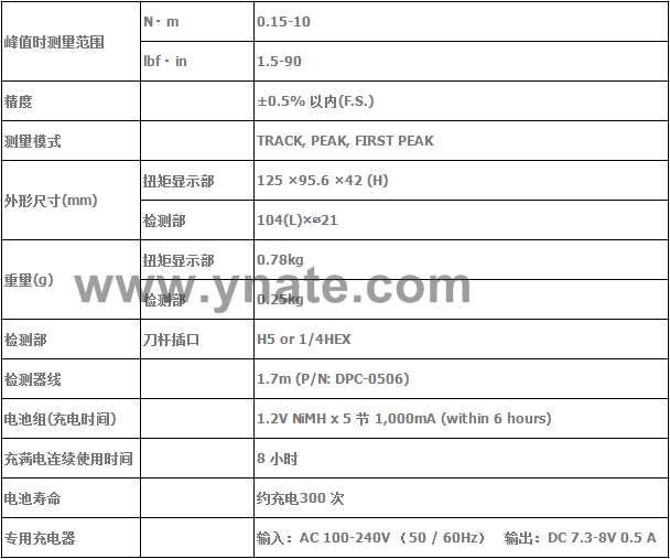 First peak尺寸(mm) 扭矩顯示部 125(W)×95.6(D)×42(H) 檢測部 160(L)×?34.5 檢測部刀頭