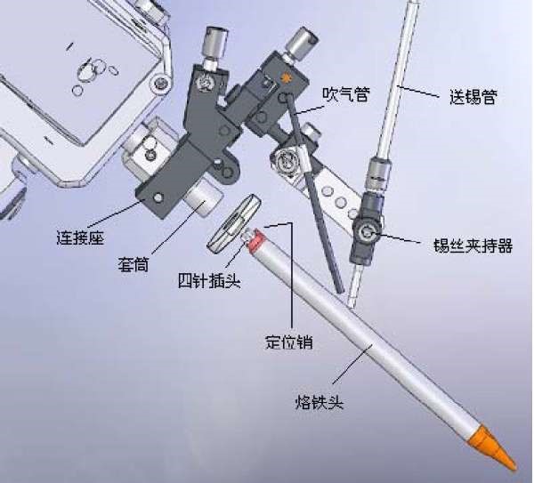 烙鐵組上錫絲定位部分及烙鐵頭部分結(jié)構(gòu)圖如下所示: