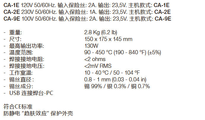 CA-2HE是一款適用於單手操作的無(wú)鉛焊臺(tái)。