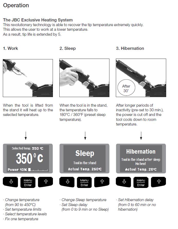 它采用了的JBC獨特的溫騰加熱系統(tǒng),溫度補償迅速,有效提高工作效率。