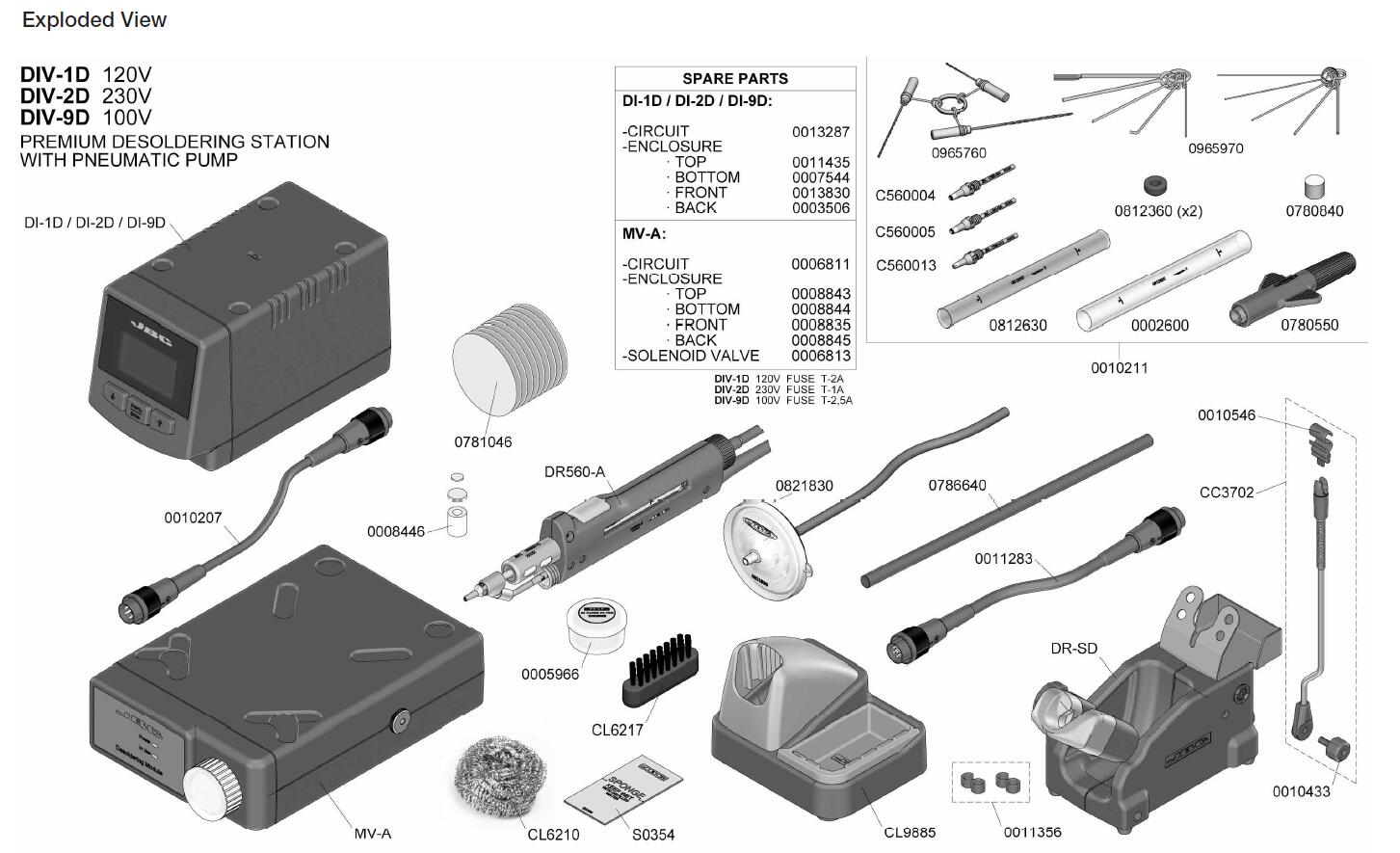 Ref. DIV-1D 120 V , DIV-2D 230 V , DIV-9D 100 VDIV高階真空除錫解焊臺設計用來拆取插入式元件和清理SMD表面貼裝電路板。